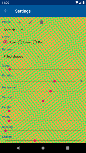 Choose from patterns such as lines, grid, shapes, spiral, concentric, tunnel, radial, rays, and zigzag.